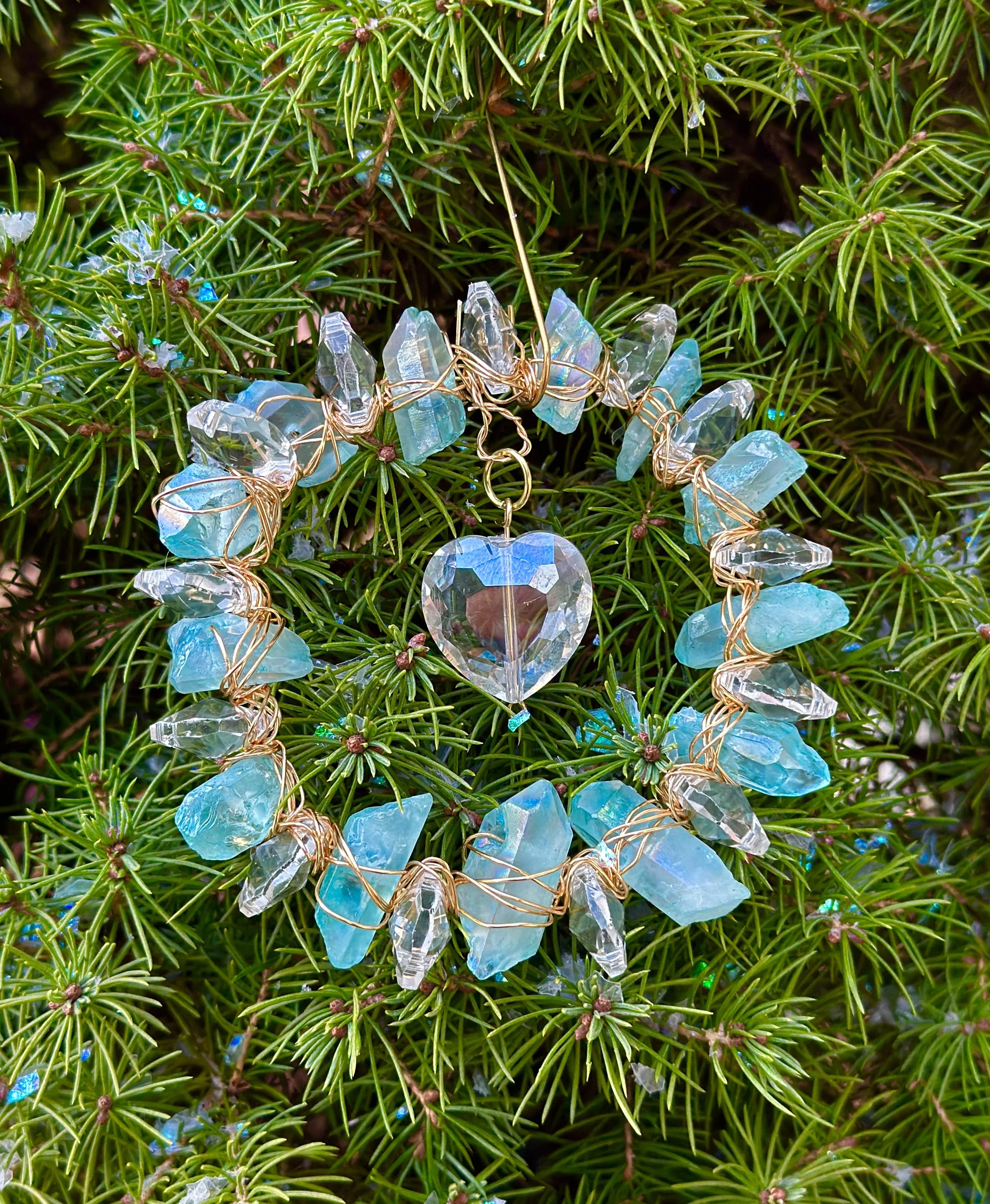 Each crystal ornament is handmade with House of Aspiring Light Intention and sure to bring a lot of sparkle to your tree.